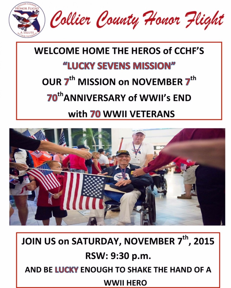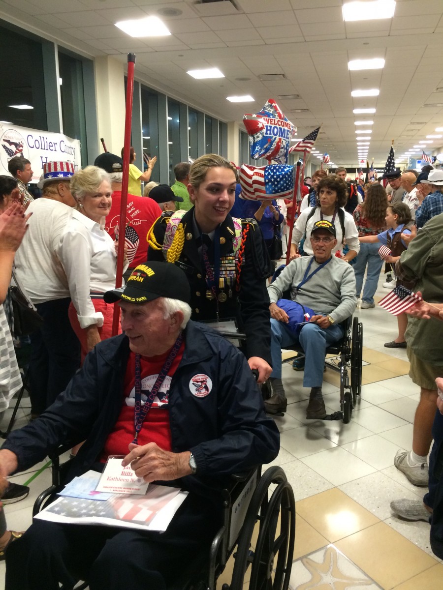 Friday, November 6th, 201570 World War II veterans will leave on a day long trip to Washington DC to view the World War II Memorial Korean War Veterans Memorial and visit Arlington National Cemetery. They will arrive back in Southwest Florida tomorrow night where a very large crowd will gather to welcome them back. What an honor this will be to meet these heroes.